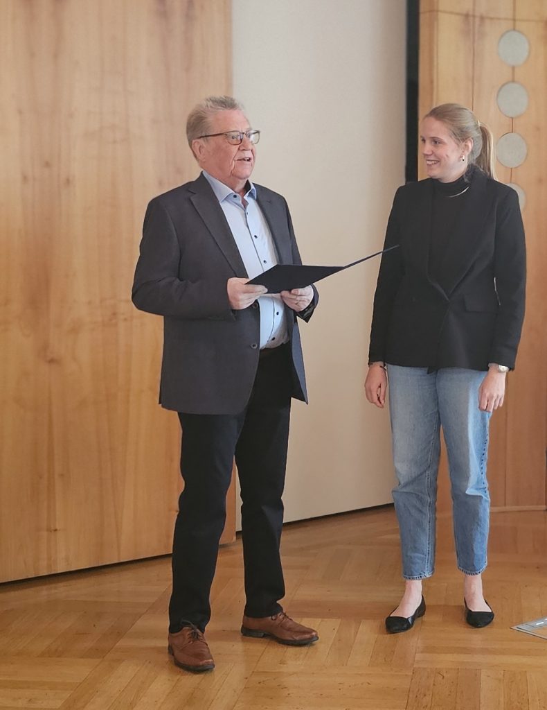 Für seine Verdienste um die Genossenschaft wurde er von Kristina Klee vom Verband der Wohnungswirtschaft mit der silbernen Ehrennadel des VDW ausgezeichnet.